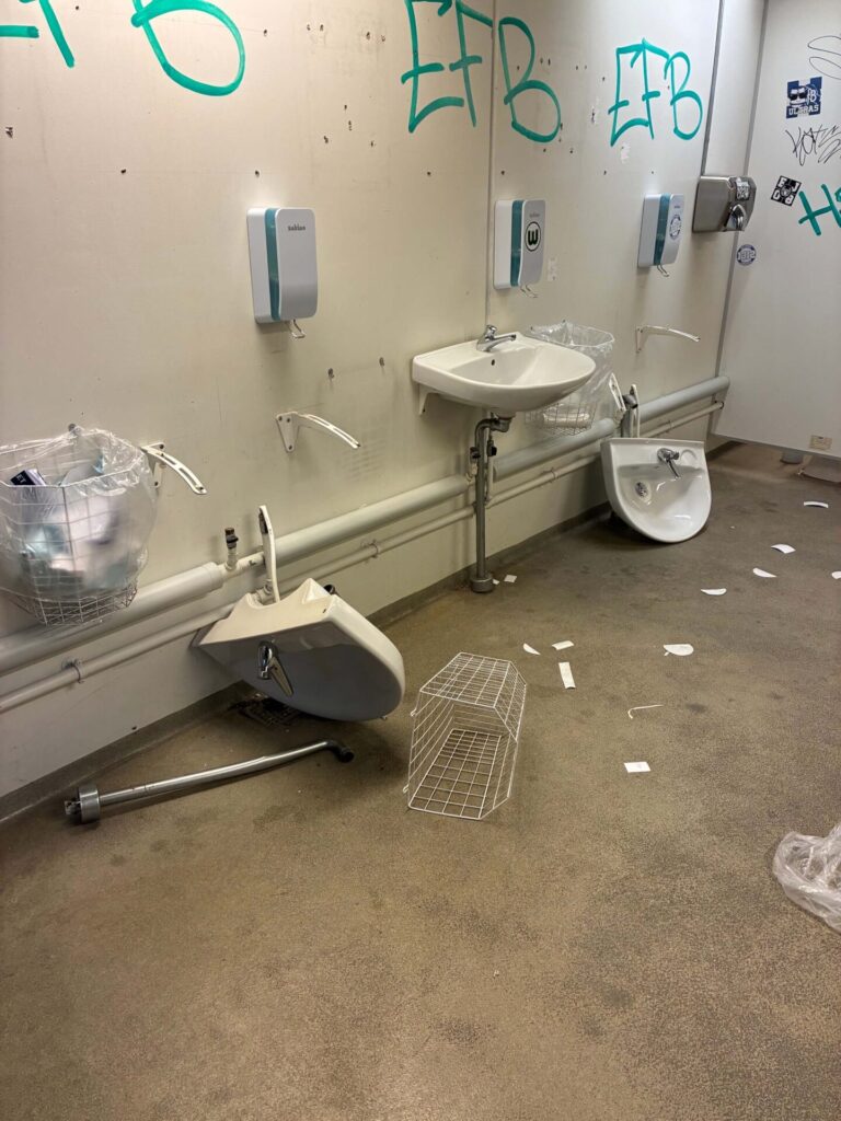 Esbjerg fB er blevet orienteret om, at der i forbindelse med udekampen fredag aften på Lyngby Stadion blev begået hærværk på toiletterne i udebaneafsnittet.